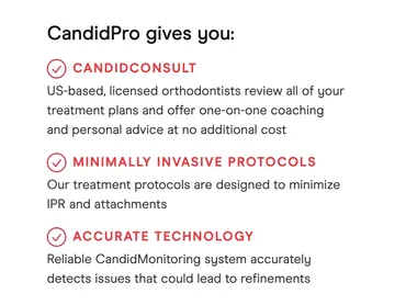 Mastering clear aligners takes time. CandidPro empowers dentists to deliver expert-level care with clinical oversight from US-based, licensed orthodontists, precisely manufactured aligners, minimally invasive treatment protocols, and plug-and-play monitoring technology that minimizes refinements.